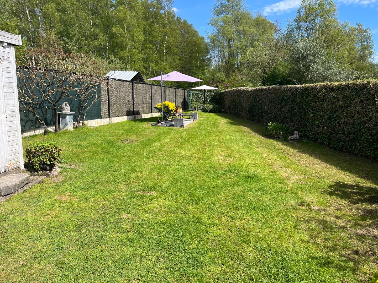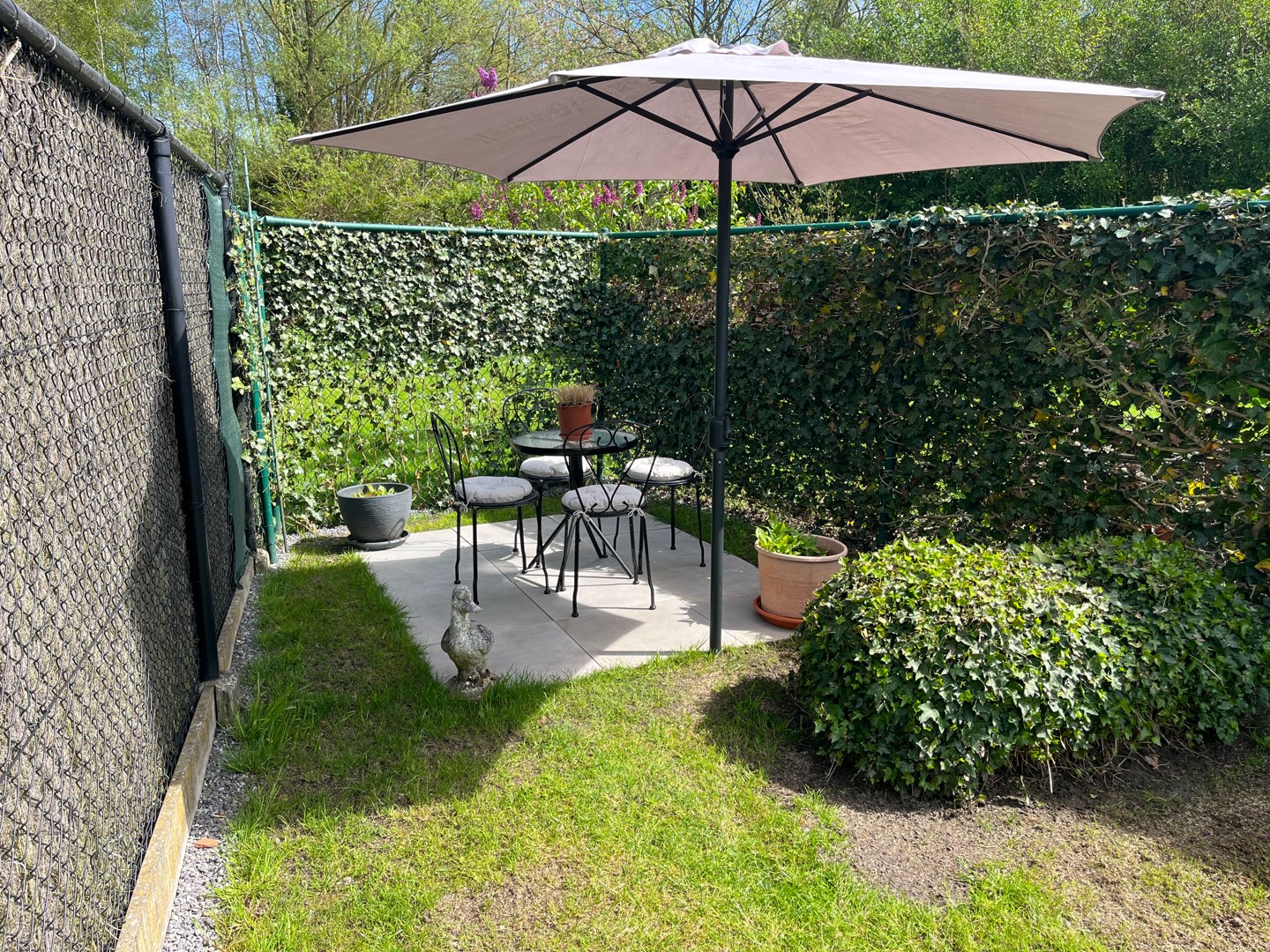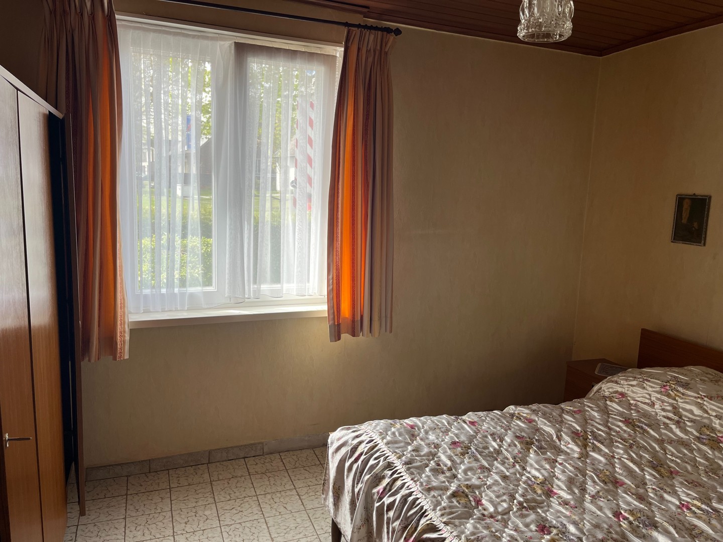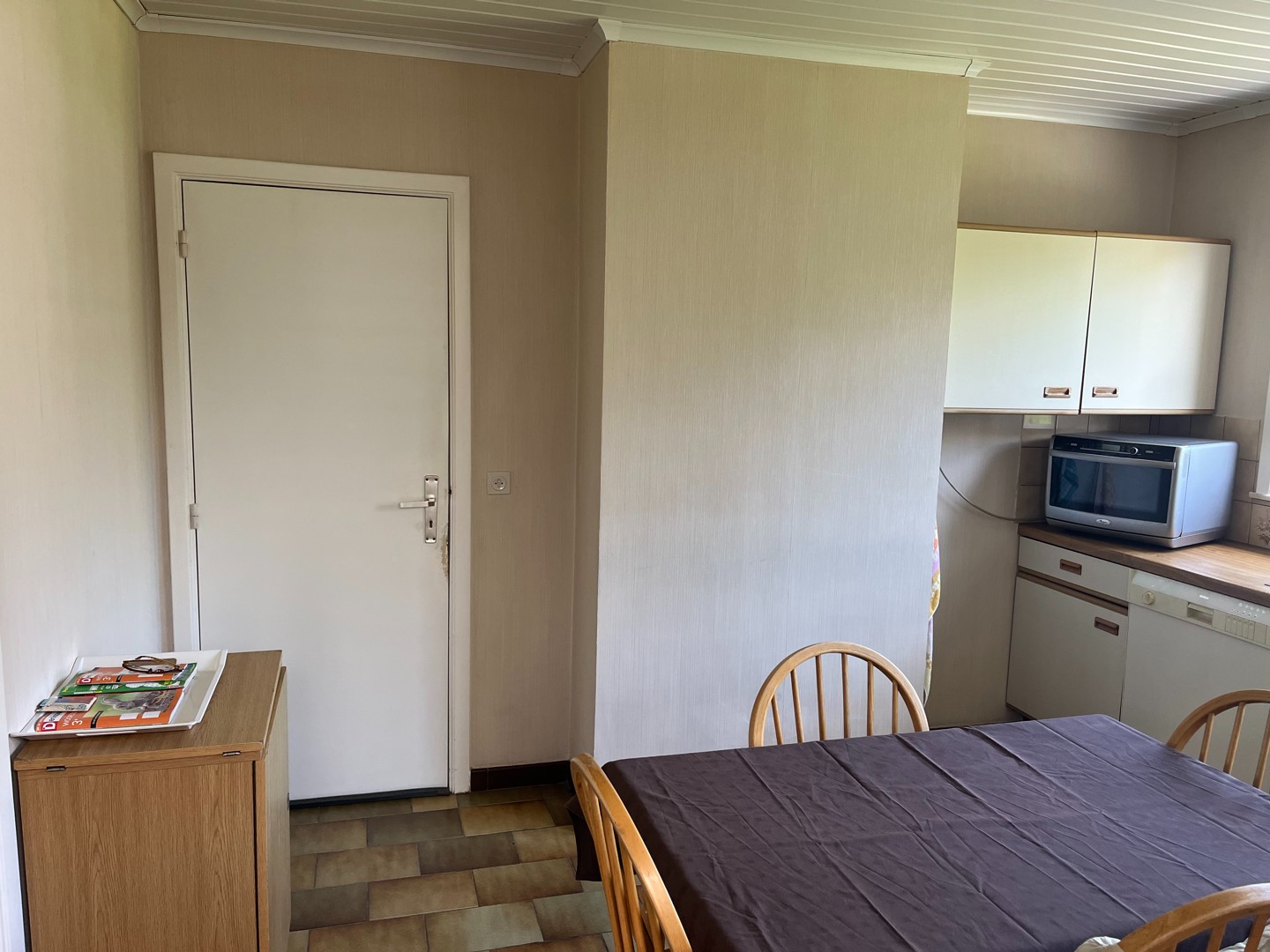 Gelijkvloers : woonkamer, keuken, veranda, wasplaats, badkamer met inloopdouche, 1 grote slaapkamer 16 m², garage. Tuin 200 m².