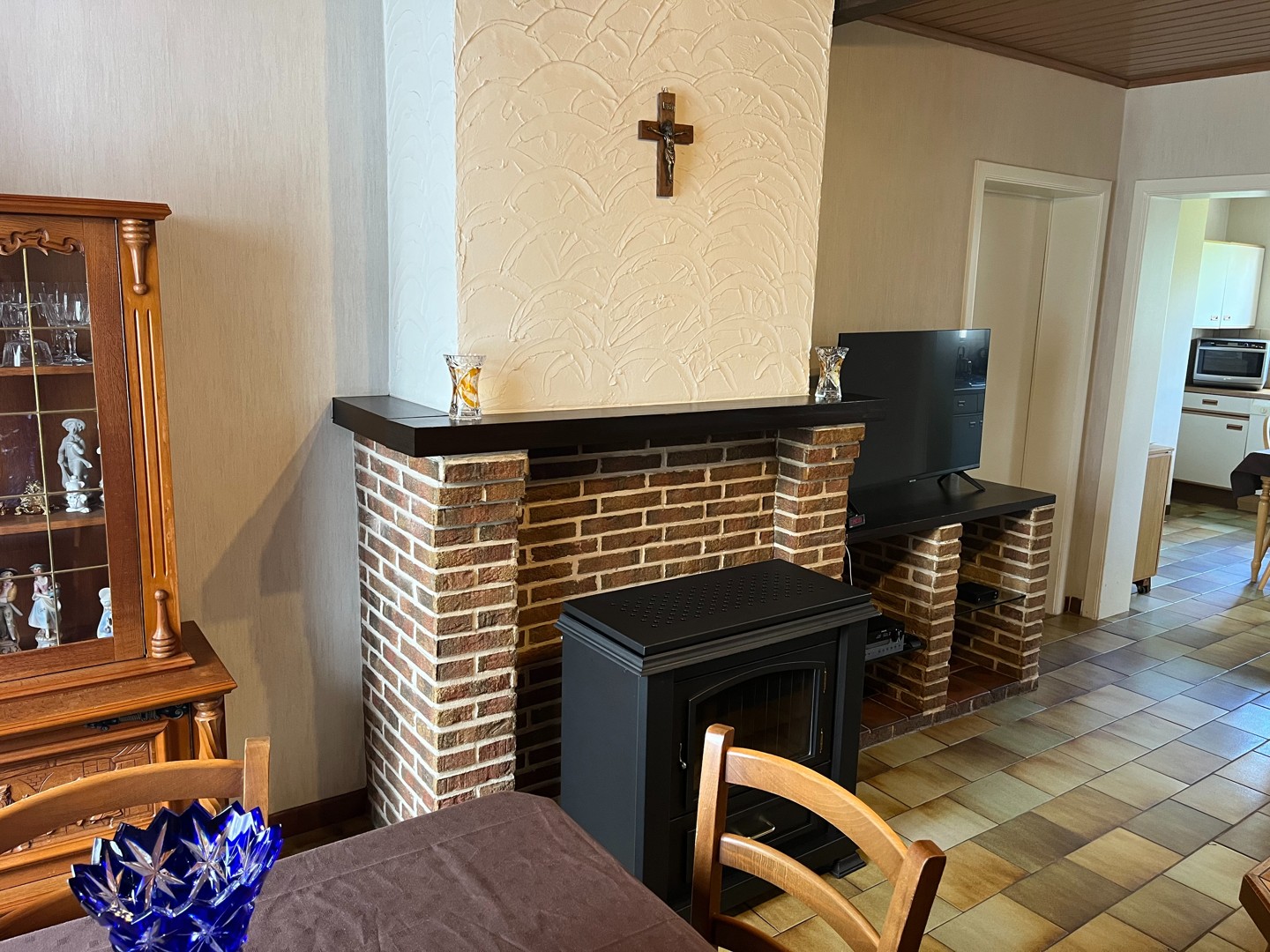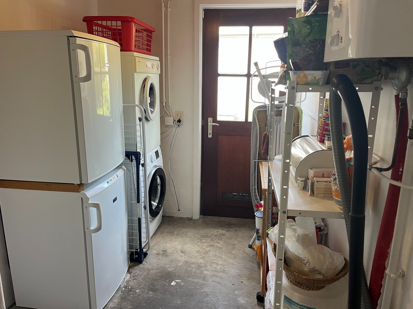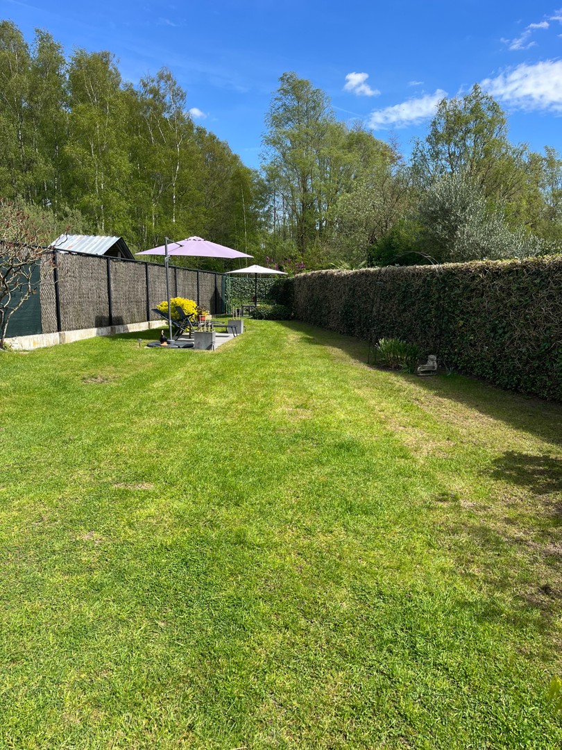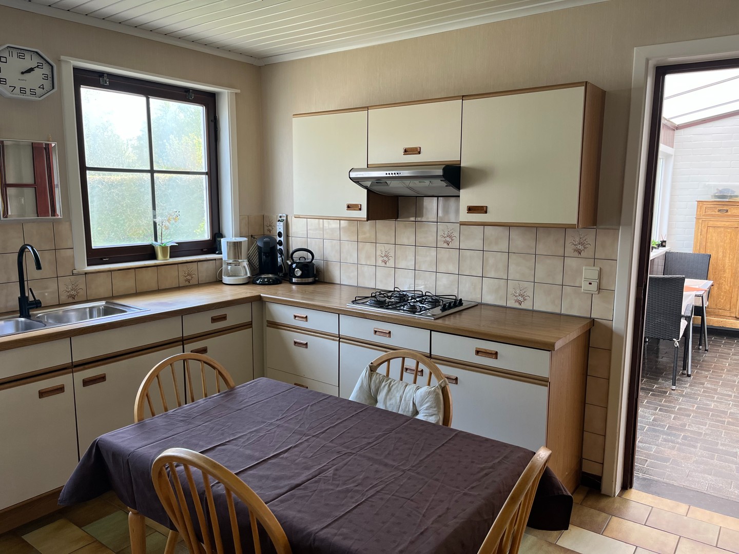 Gelijkvloers : woonkamer, keuken, veranda, wasplaats, badkamer met inloopdouche, 1 grote slaapkamer 16 m², garage. Tuin 200 m².
