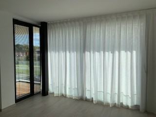 Het appartement is voorzien van gordijnen en optrekstores. Ook de verlichting is reeds aanwezig in alle ruimtes.